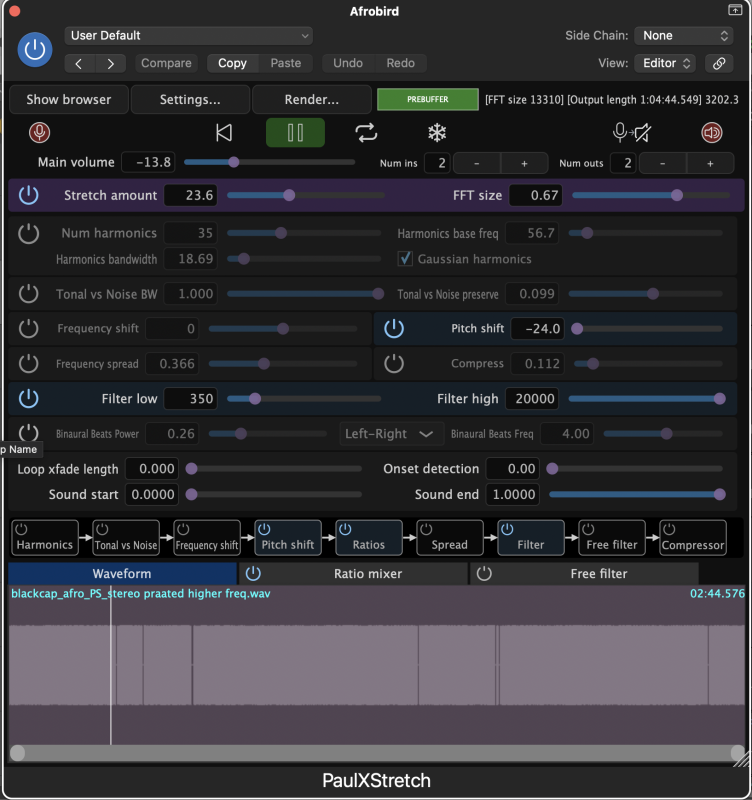 My first five days were spent trying to develop the idea into a piece that might actually be enjoyable to listen to for 40–45 minutes. I had almost an hour of ambient birdsong that sometimes sounded beautiful and other times quite scary, as waves and shards of stretched audio would overwhelm the frequency spectrum. I started looking at ways to process it further: using old spectral-analysis software to remove harmonic resonances, using autotune to control pitch drift, and then turning the audio into MIDI data — magic!