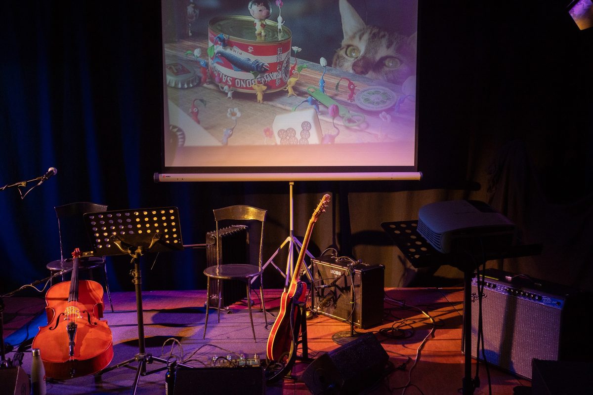 Empty stage at The Cooler, ahead of a performance by Aleka with visuals from Maddie Cahil Byrne & Burke